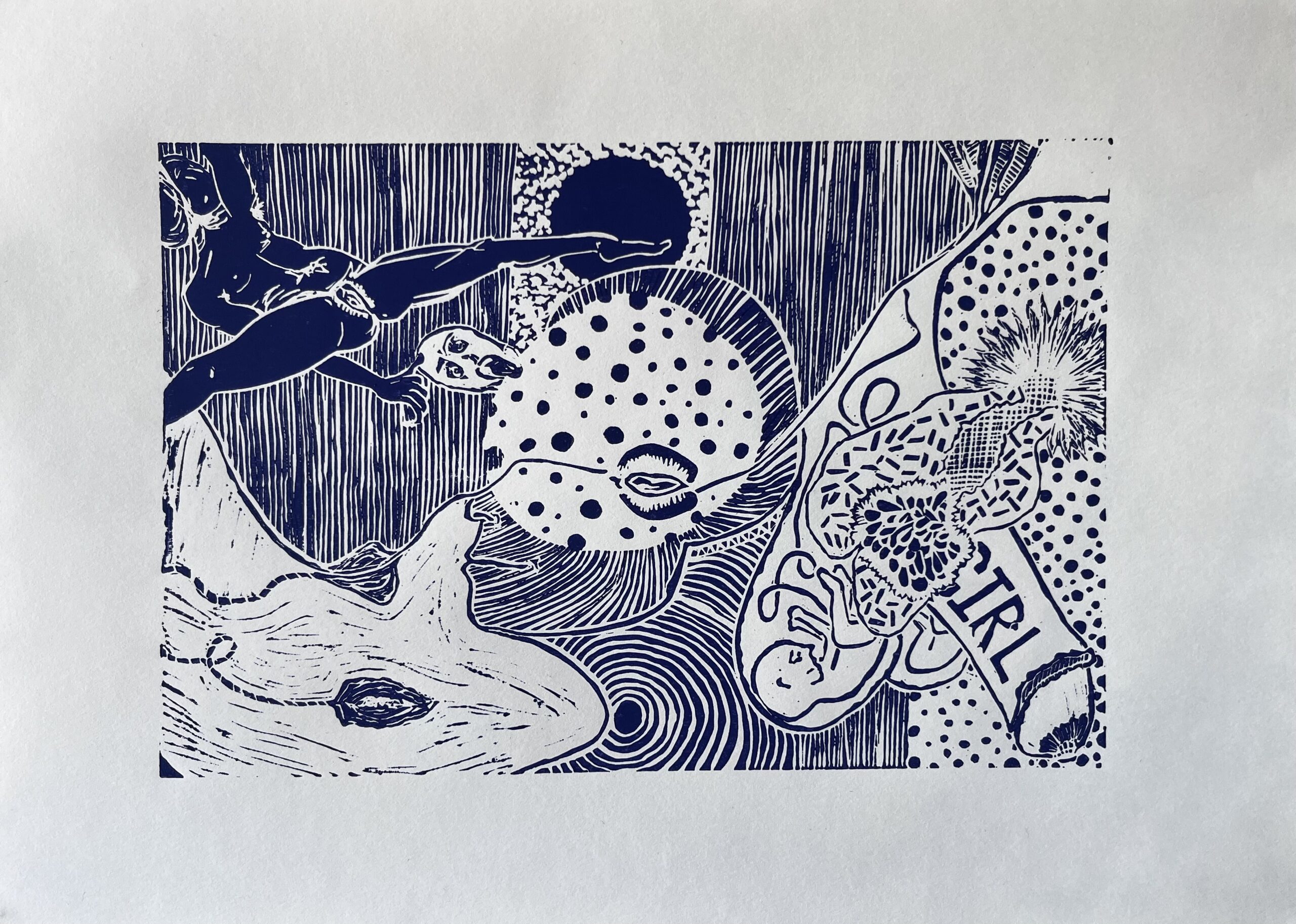“Are You a Boy or a Girl?” is an original signed lino etching printed by hand by the artist in Observatory, Cape Town.