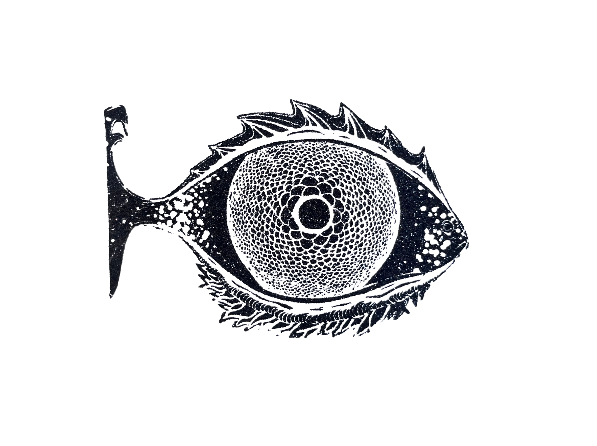 “Upstream” is an original signed lino etching printed by hand by the artist in Observatory, Cape Town.